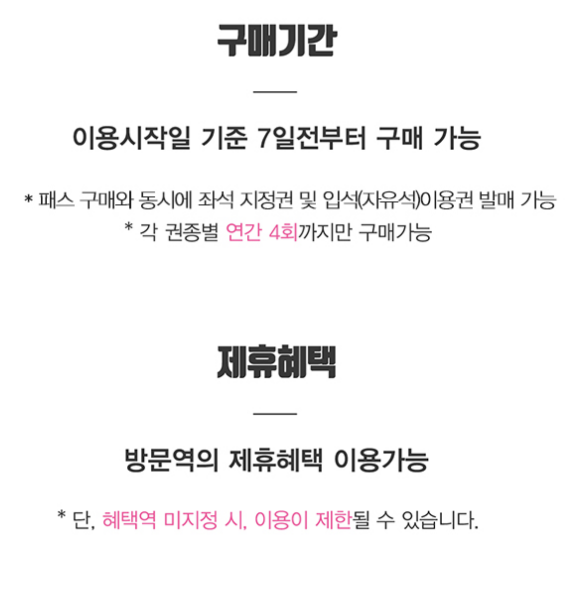 - 패스에 표기된 기명인만 사용 가능하며 타인 양도 절대 불가합니다.