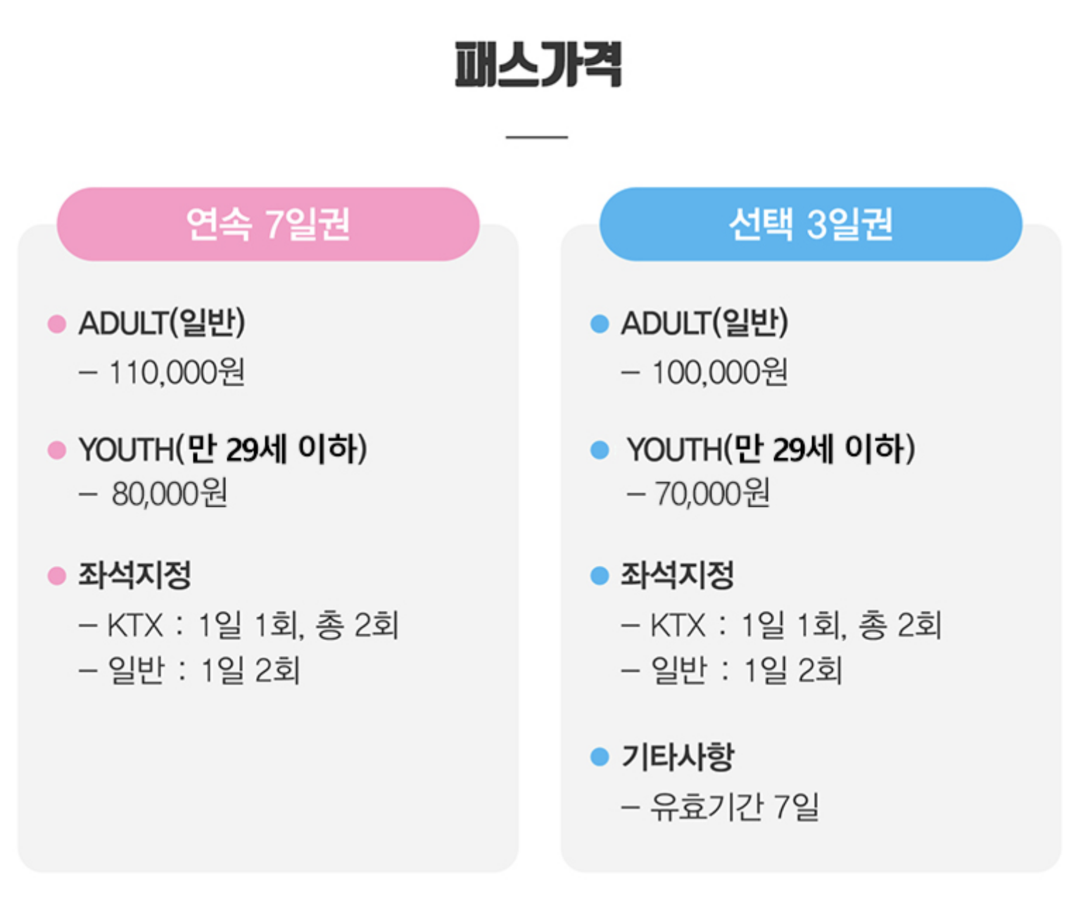 강릉, 대구, 부산, 전국 기차가 가는 곳이면 어디든 갈 수 있는 패스