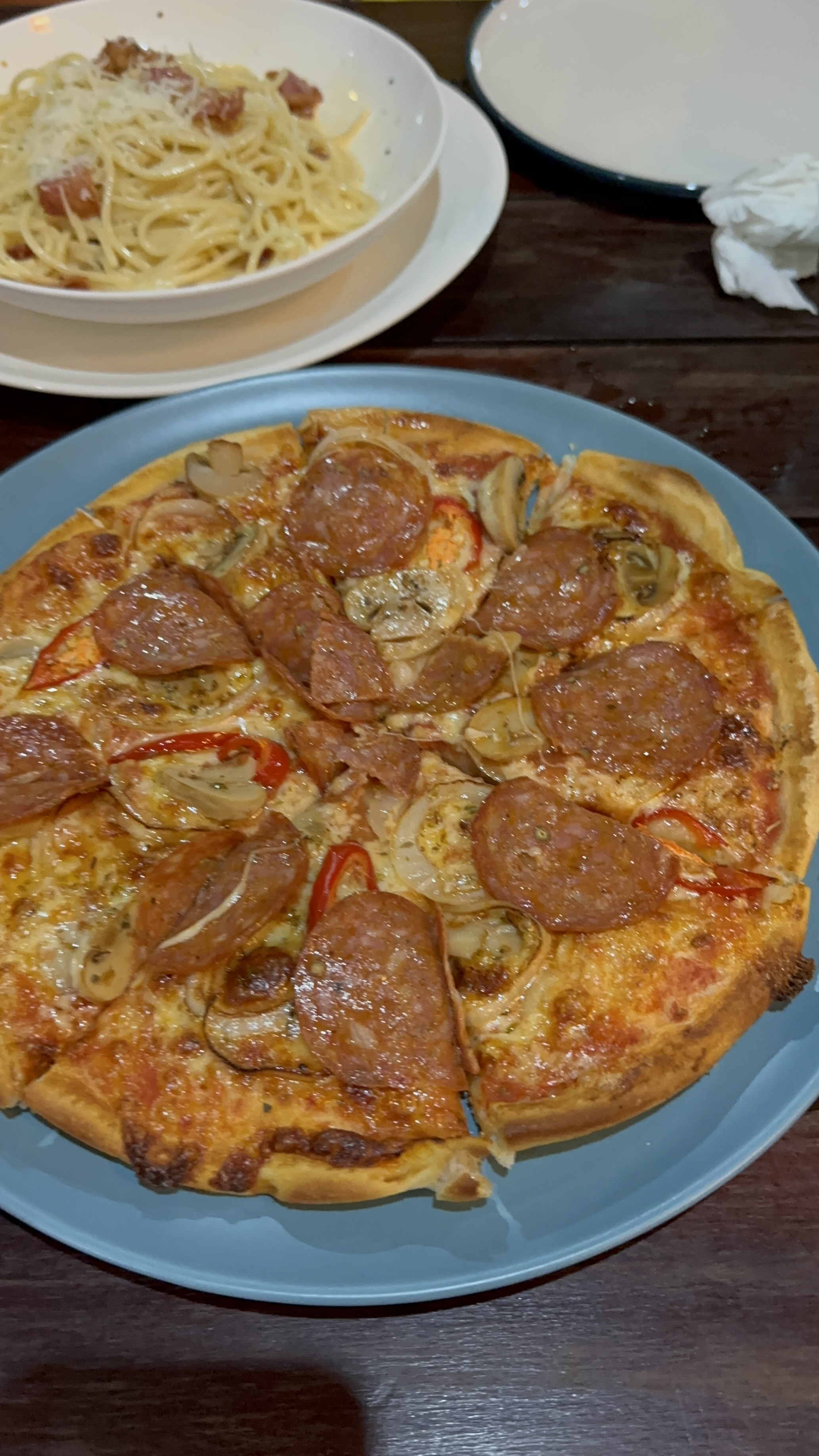 식사는 근처에 피자집으로 오토바이타고 고고